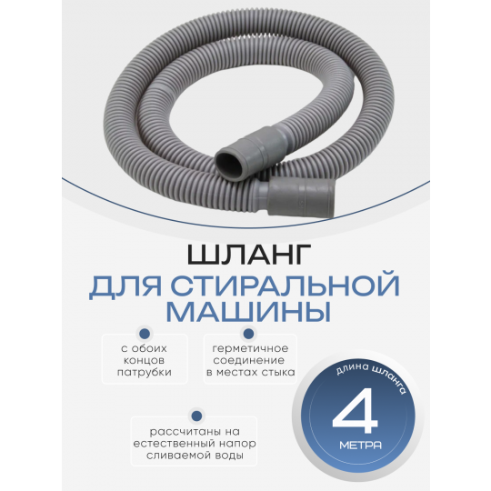 Водяной шланг для стиральной машины разработан с учетом современных стандартов качества и безопасности. Благодаря оптимальной длине, сливной шланг для стиральной машины 4 метра идеально подходит для подключения к любой системе канализации.