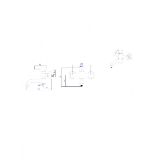 Смеситель для ванны с душем с коротким изливом оснащен жесткой подводкой 1/2" и предназначен для настенного монтажа.