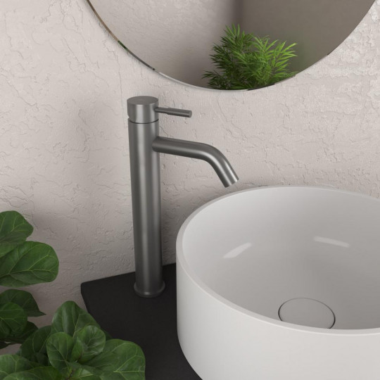 Смеситель для раковины RUSH Melos арт.SUS1101-12Grey с металлической ручкой изготовлен из нержавеющей стали SUS304 и имеет рычажное управление.