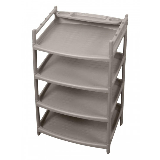 Широкая этажерка для обуви Rambai — это эффективное и недорогое решение для организации хранения обуви. Четыре полки позволят разместить около 8-16 пар обуви, в зависимости от размера. Отличительная особенность этажерки — ее габариты, в собранном виде они составляют 50,5x41x80,5см. Она собирается без инструментов за несколько минут, достаточно соединить стойки и полки, вставить ножки и заглушки. На верхней полке этажерки предусмотрены бортики с выступами для ключей, ложки для обуви или зонтика, а по центру — длинная полочка для ключей или губки для обуви. Производится из прочного долговечного полипропилена, не боящегося перепадов температур и влажности.