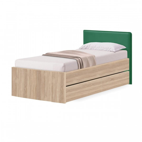 Кровать 900х2000 Дрим-софт с ящиками, с мягкой спинкой, Velutto 32, дуб сонома, Боровичи