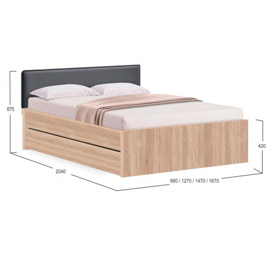 Кровать 900х2000 Дрим-софт с ящиками, с мягкой спинкой, Velutto 32, дуб сонома, Боровичи - купить в универсальном интернет-магазине НОХТ
