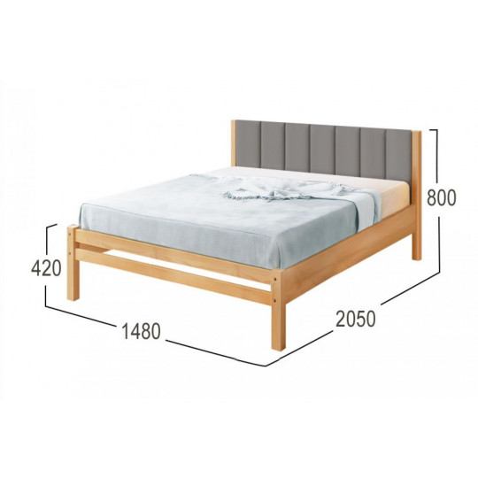 Кровать Массив с мягким изголовьем 1400. Материал: массив. Основание - ортопедическое реечное. Размеры спального места, см: 90х200, 120х200, 140х200, 160х200. Высота от пола до начала царги - 24 см + 18 см сама царга. Матрас утапливается на 9-10 см.