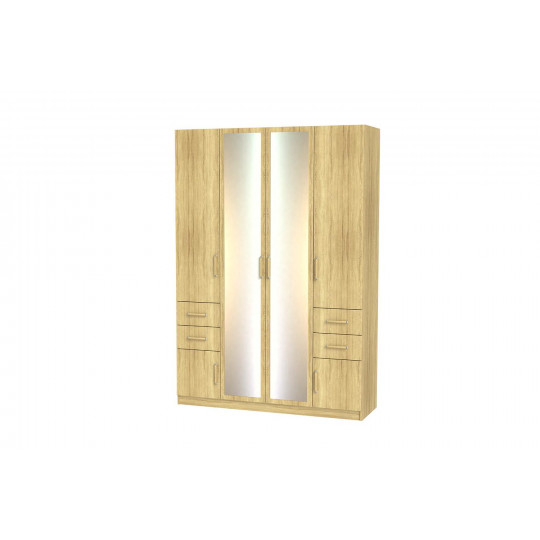 Шкаф шк-4/4 (феникс м-14) для одежды белья 4-х верный с зеркалом с 4-мя ящиками 1600х2100х520 дуб вотан лдсп Феникс - купить в универсальном интернет-магазине НОХТ