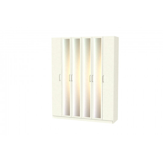 Шкаф шк-6/5 шестистворчатый с зеркалом белый лдсп Феникс