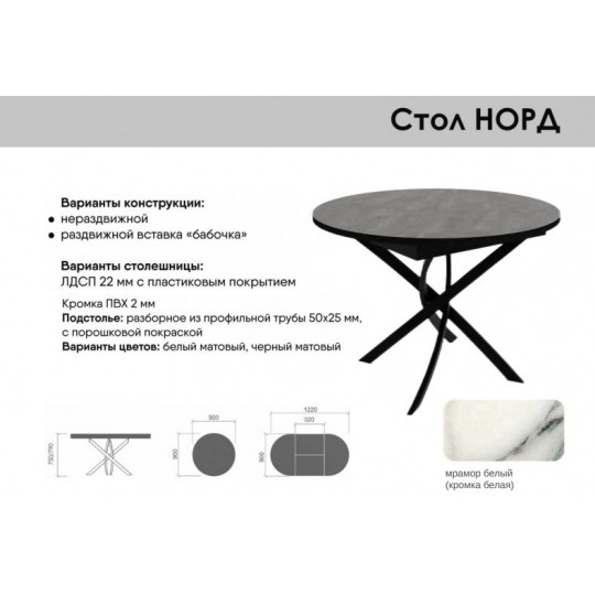 Стол обеденный раздвижной норд круглый 900/1220х900х790 бабочка 320мм черный мрамор белый профторг - купить в универсальном интернет-магазине НОХТ