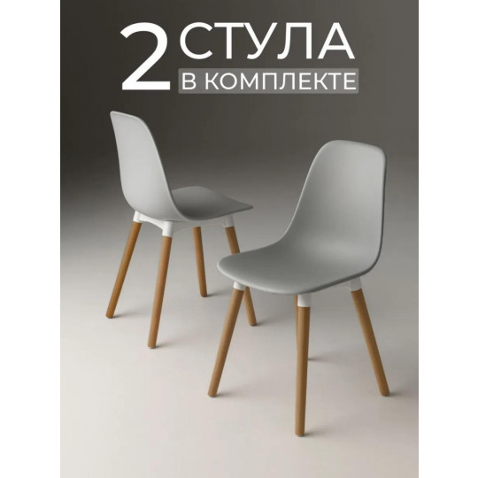 Стул Brava на деревянных ножках, сиденье пластик, серый, комплект 2 шт, Stepp - купить в универсальном интернет-магазине НОХТ