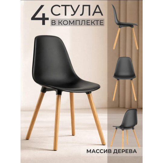 Стул Brava на деревянных ножках, сиденье пластик, черный, комплект 4 шт, Stepp - купить в универсальном интернет-магазине НОХТ