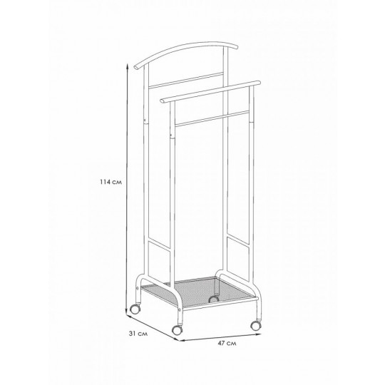 Вешалка костюмная Римини 2М, созданная с использованием сварки, отличается прочностью. Благодаря наличию колёсиков, изделие легко перемещать.
