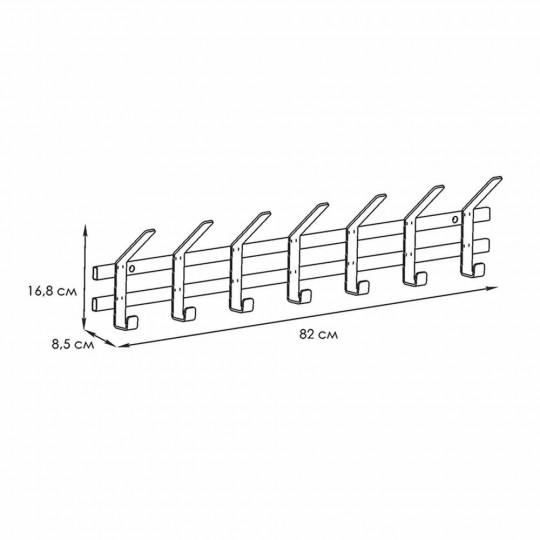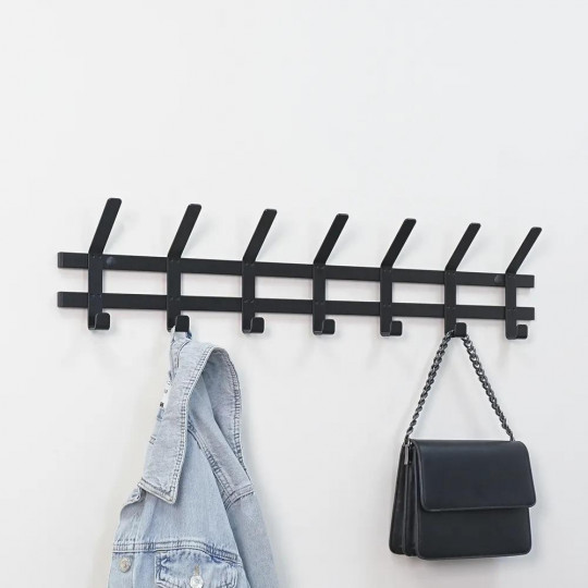 Универсальная вешалка для хранения вещей имеет 7 двойных крючков - каждый из них выдерживает до 7 кг постоянной нагрузки.