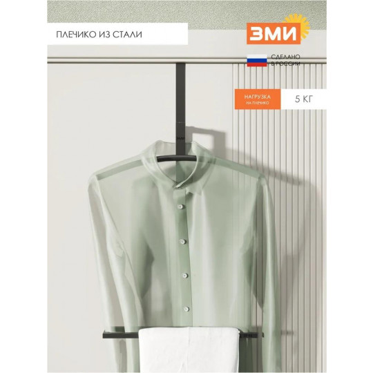 Навесная костюмная вешалка из стали. Прочная и компактная, экономит пространство. Подходит для размещения на дверь или на стену. Предназначена для аккуратного хранения костюмов, пиджаков, рубашек, брюк и других предметов гардероба. Помогает сохранять форму одежды, предотвращая появление заломов и складок.