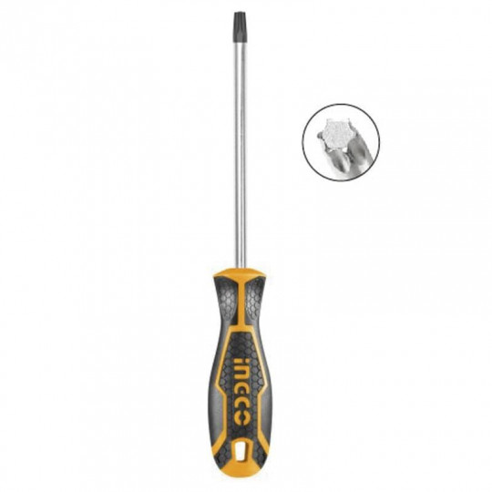 Отвертка Т20 Torx 150 мм INGCO HS28T20150 со звездообразным шлицем (Torx) применяется для различных работ с крепежом.