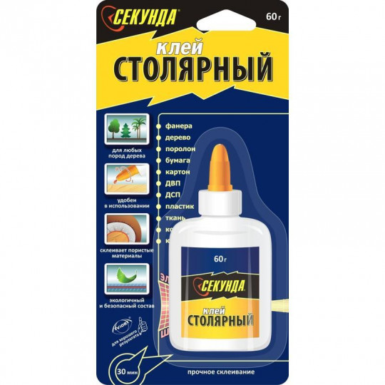 Клей секунда моментальный столярный 60гр блистер,шоу бокс