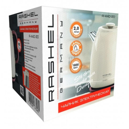 Чайник электрический 2.0 л 1800 Вт, диск, двойной корпус, сталь /пластик, крем, Rashel - купить в универсальном интернет-магазине НОХТ