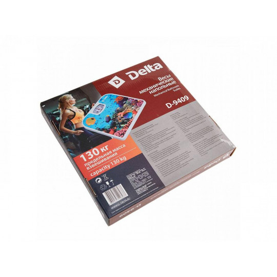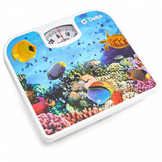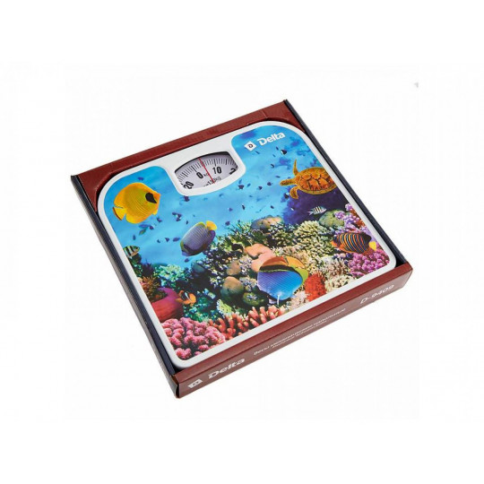 Весы Delta D-9406 позволяют измерять массу тела и станут надежным помощником для тех, кто ведет здоровый образ жизни. Они оборудованы прочной платформой с разноцветным красочным рисунком в стиле «Подводный мир», которая способна выдерживать нагрузку до 130 кг. Для отображения сведений о массе тела установлен механический циферблат с шагом в 1 кг. Благодаря компактным размерам и небольшой высоте вы сможете с удобством хранить весы под мебелью или в шкафу. Нескользящие ножки на основании платформы гарантируют надежную фиксацию весов Delta D-9406 на различных покрытиях.