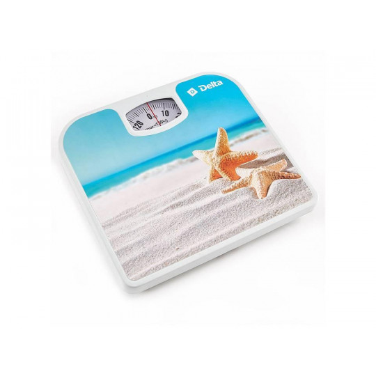 Весы Delta D-9406 позволяют измерять массу тела и станут надежным помощником для тех, кто ведет здоровый образ жизни. Они оборудованы прочной платформой с разноцветным красочным рисунком в стиле «морской бриз», которая способна выдерживать нагрузку до 130 кг. Для отображения сведений о массе тела установлен механический циферблат с шагом в 1 кг. Благодаря компактным размерам и небольшой высоте вы сможете с удобством хранить весы под мебелью или в шкафу. Нескользящие ножки на основании платформы гарантируют надежную фиксацию весов Delta D-9406 на различных покрытиях.